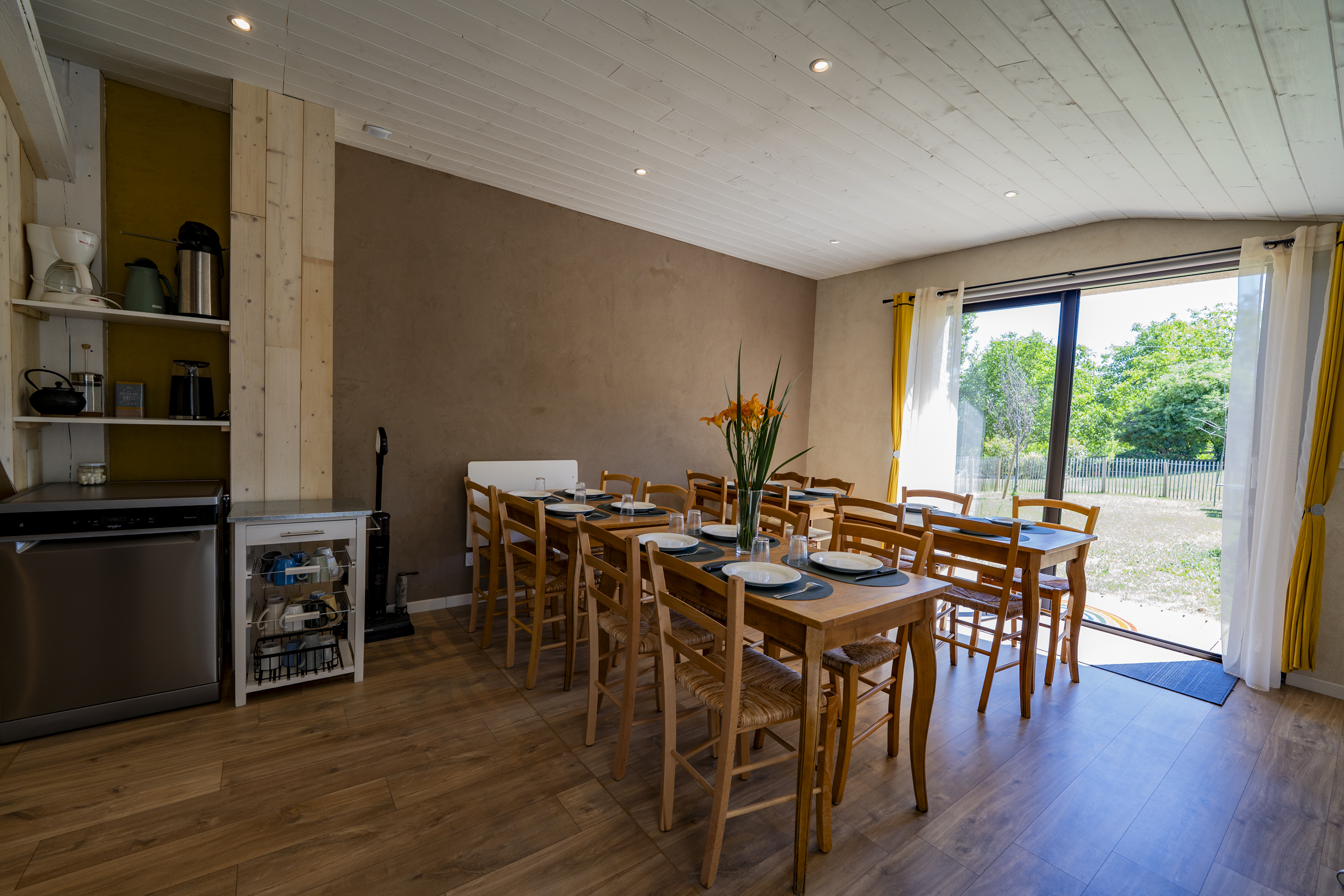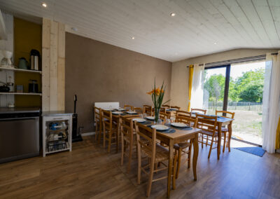 Une cuisine et une salle de restauration équipée pour 14 personnes.